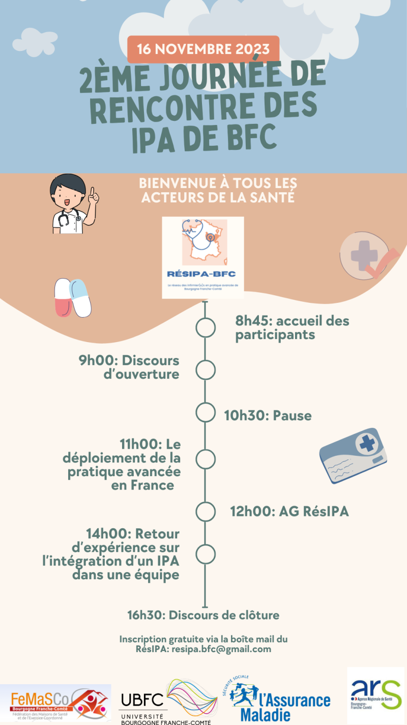 Le ResIPA BFC (réseau des infirmiers en pratique avancée de Bourgogne Franche-Comté) organise sa 2e journée d’échanges le jeudi 16 novembre 2023 à l’UFR santé de Besançon